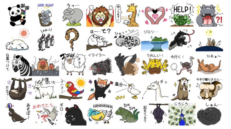 スタンプは当園で飼育する約130種類の動物たちの中から40種類のイラストが制作されました。