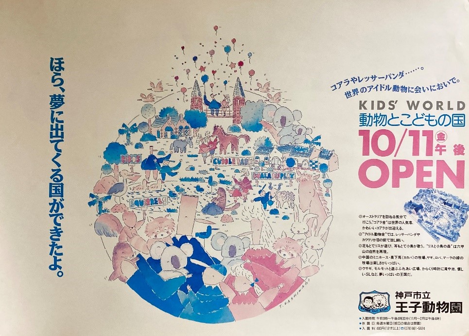 この写真は“動物とこどもの国”エリアの約33年前のポスターです。