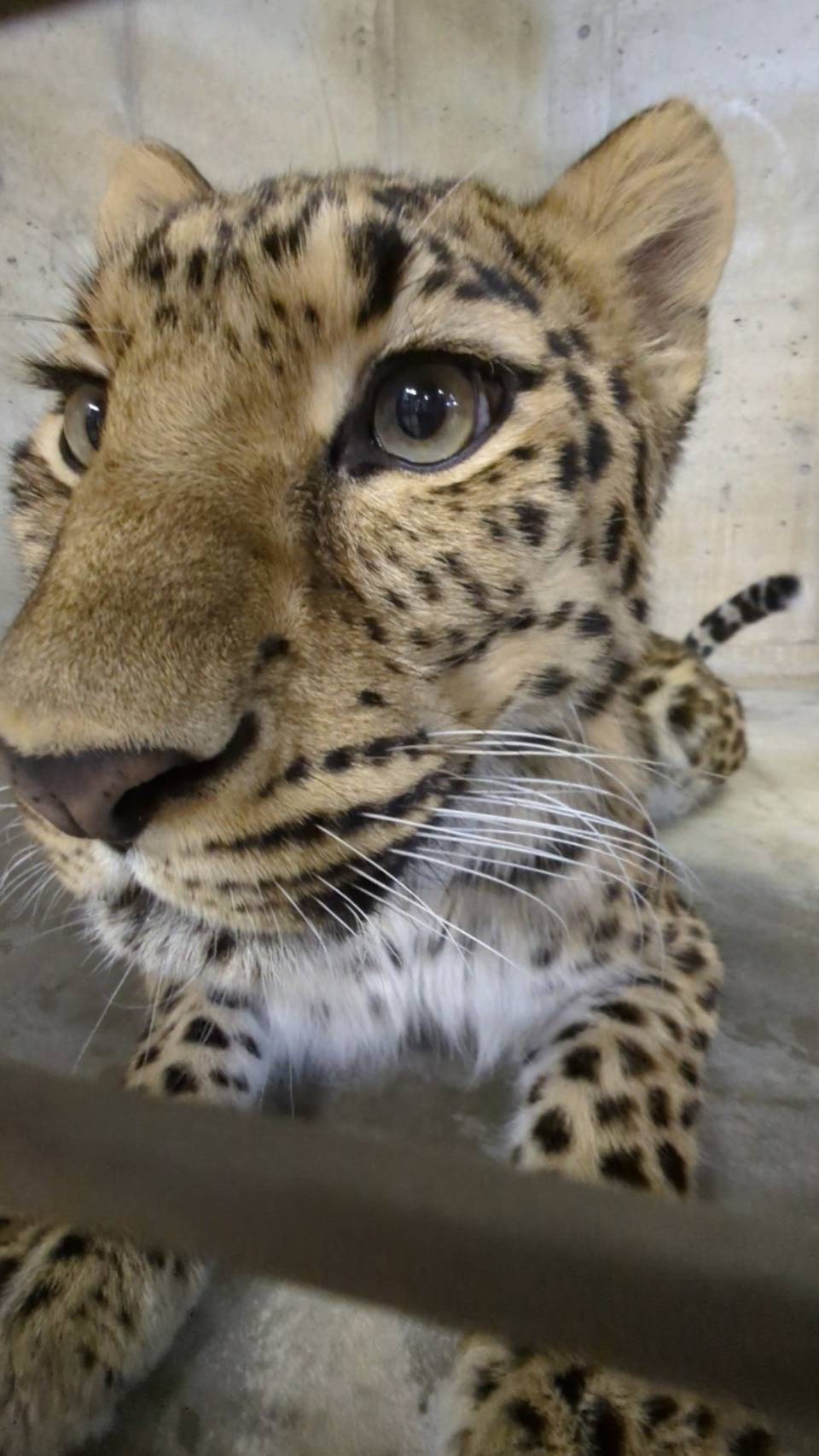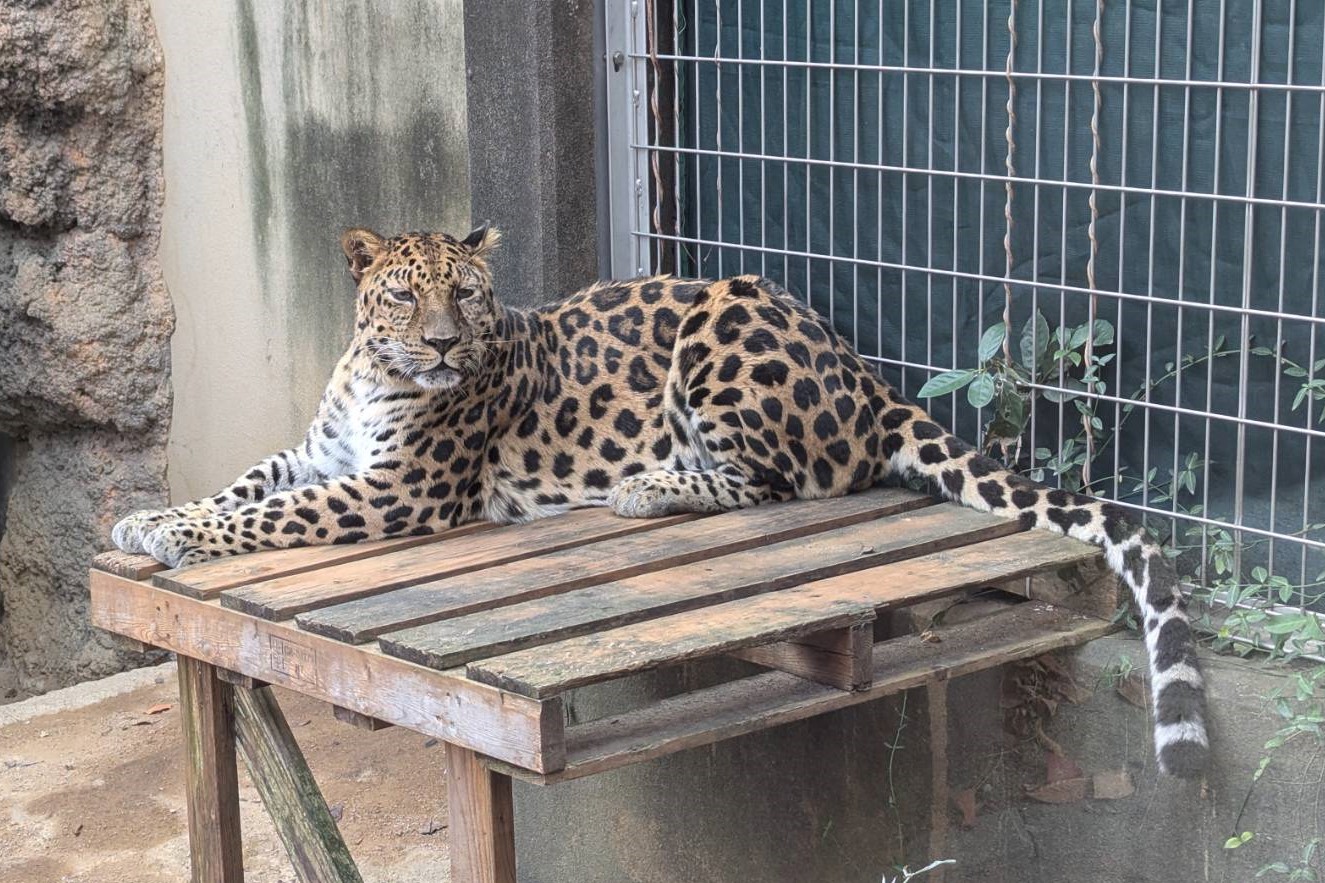 ヒョウのなかでも最北のロシア沿岸地方等に生息するが、野生下の数はおよそ100頭と他のネコ科と比べても少なく、絶滅危惧種(CR)に指定されている。・オスの「アニュイ」はガッシリ体型ではっきりした顔立ち。毎朝の放飼場内の点検に余念がない。