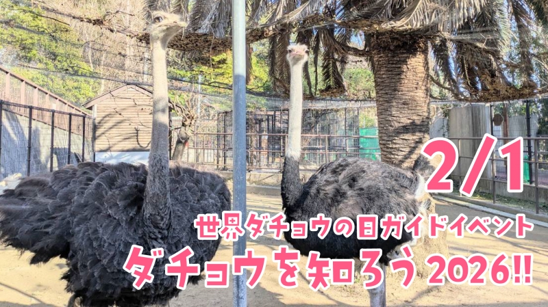 2月2日の世界ダチョウの日にちなみ、2月1日(日)にダチョウのガイドイベントを行います。 ダチョウの生態や王子動物園の飼育個体の紹介など、飼育員によるお話をしますので、ぜひお越しください!
