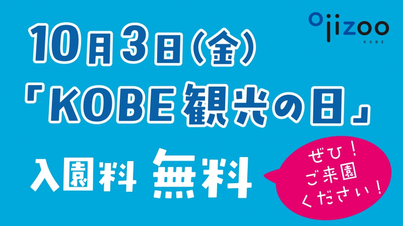 2025年10月3日(金)はKOBE観光の日です。 それに関連して王子動物園では入園無料といたします。 この機会にぜひお越しください!