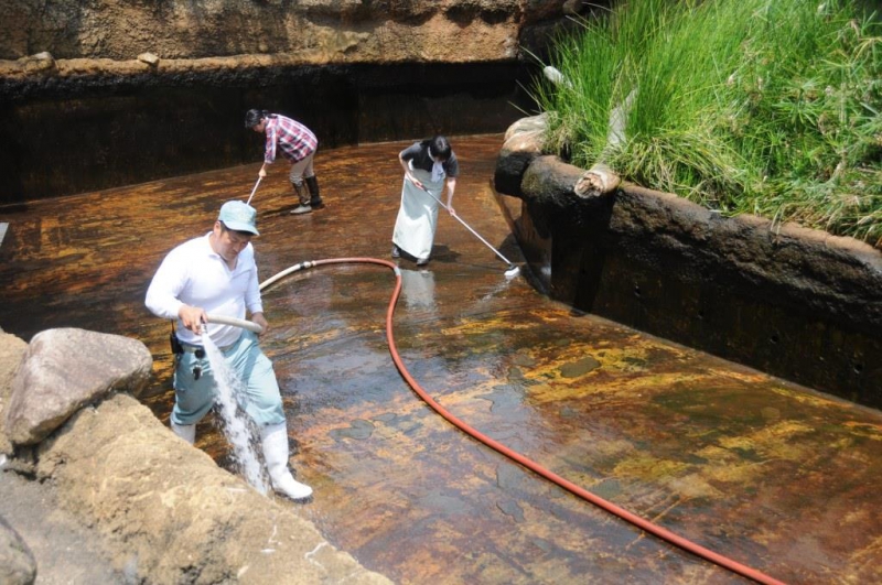 参加者には数名ずつのグループに分かれて、普段は入れないバックヤードや調理場などに入り、飼育員によるガイドを聞いたり、獣舎清掃やエサ作りなどの飼育体験をしてもらいます。