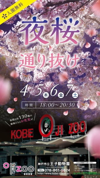 毎年、春になると約480本のソメイヨシノが咲き誇る王子動物園は、神戸市内でも有数の桜の名所として知られており、ライトアップされた桜は昼間とはまた違った美しさを醸し出します。