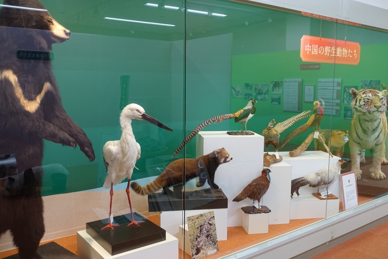 最大のネコ科であるアムールトラや、色鮮やかなキンシコウ、キジ類等中国原産の希少動物をはく製(12点)等で解説