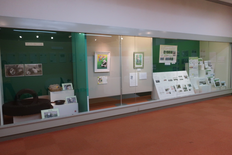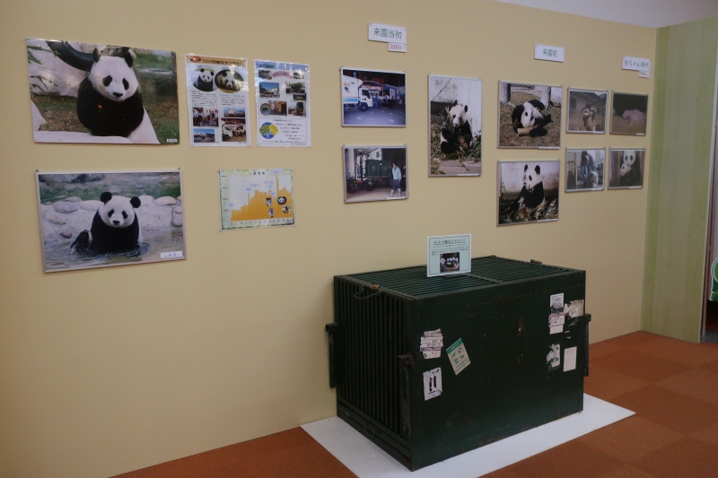 タンタンの年表、写真を始め、飼育で使用した道具のほか、飼育員や中国専門家からのメッセージの展示