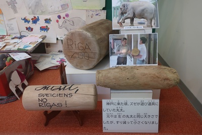 アジアゾウの「ズゼ」とシベリアオオヤマネコの「アル」、「ベル」にスポットを当て紹介。ベルが王子動物園に来る際に使われた移送檻(実物)や、ズゼがリガ動物園を離れる際にリガの子どもたちから贈られたぬいぐるみや絵等、またズゼがお守りのように大切にして遊んでいた丸太(実物)や、ズゼの誕生日にリガ動物園のハイイロアザラシ「プイカ」が描いてくれた絵(実物)等を間近に見ていただけます。