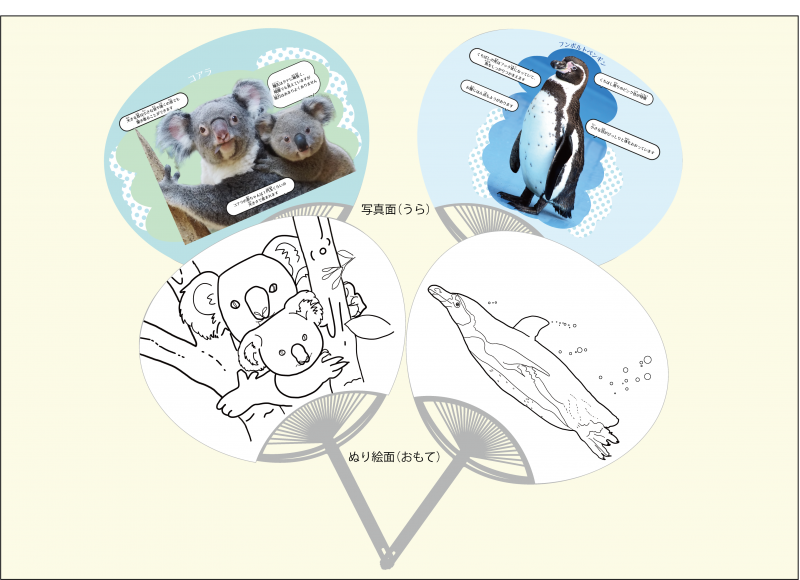 内容:動物のぬり絵に色を塗り、うちわの骨に貼り付けて仕上げます。