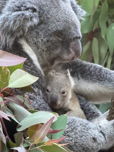 6月12日に誕生したコアラの赤ちゃんが、12月29日に母親のお腹の袋から顔を出したのを確認しました。